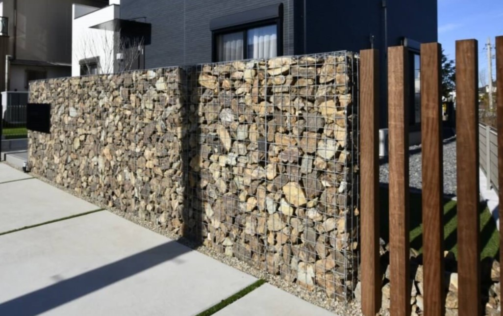 ガビオンは、ワイヤーカゴのバリエーションが多く入れる石も自由なので、自分の家の雰囲気に合わせてオリジナルが楽しめます。
