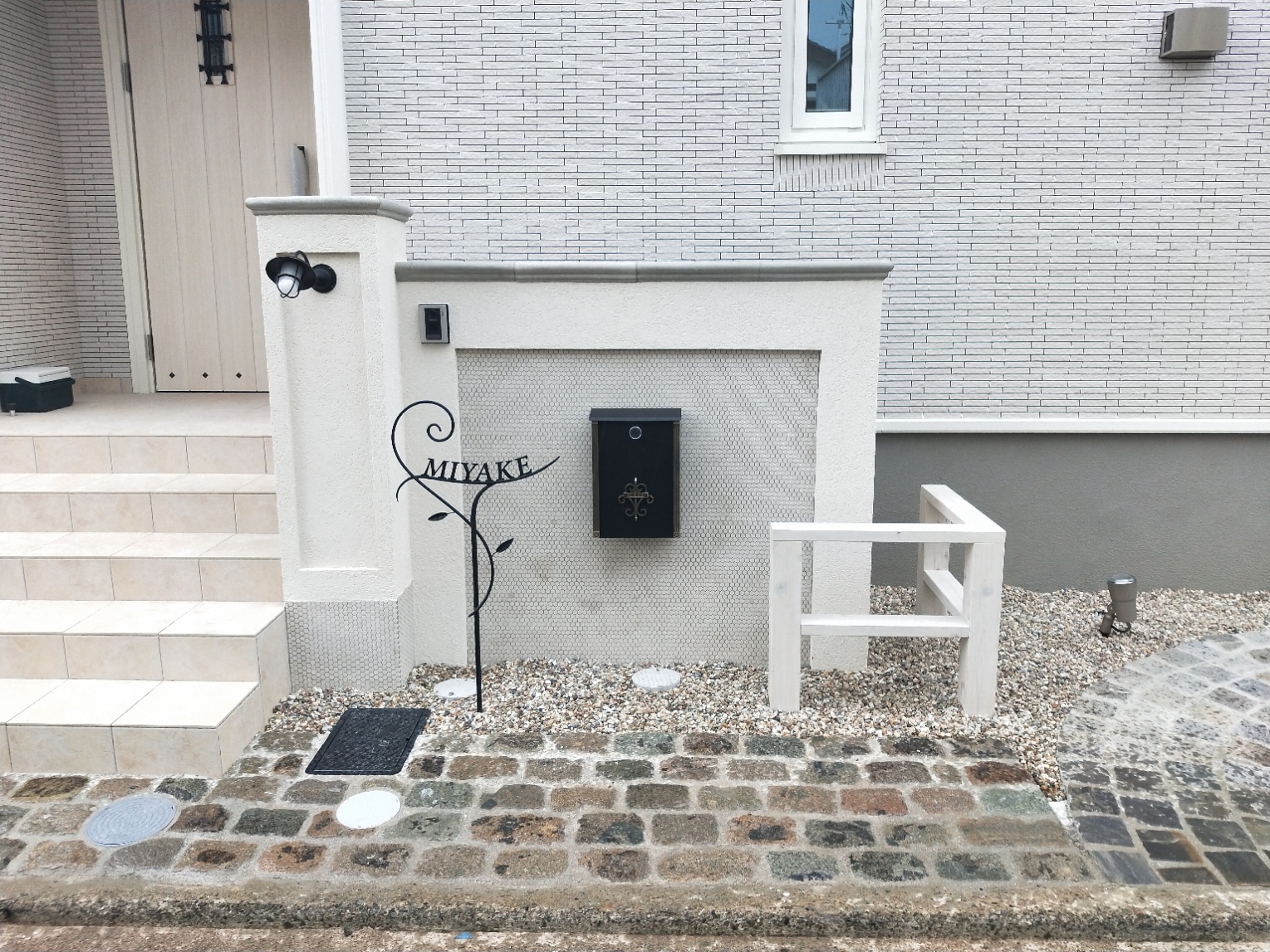 アプローチは天然石を使用しています。