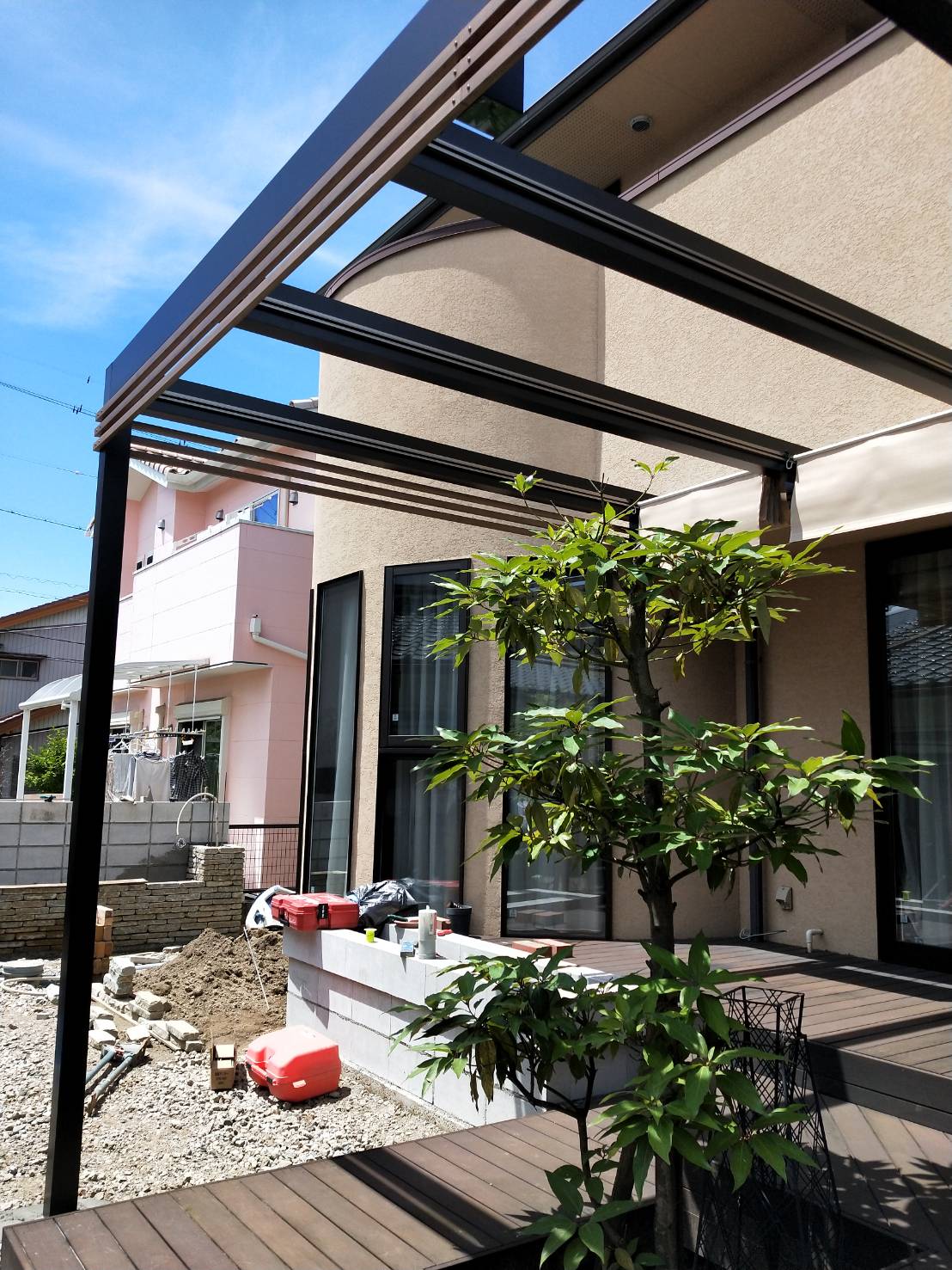 お庭全面リフォームということと最近の雨で工事が遅れておりますが