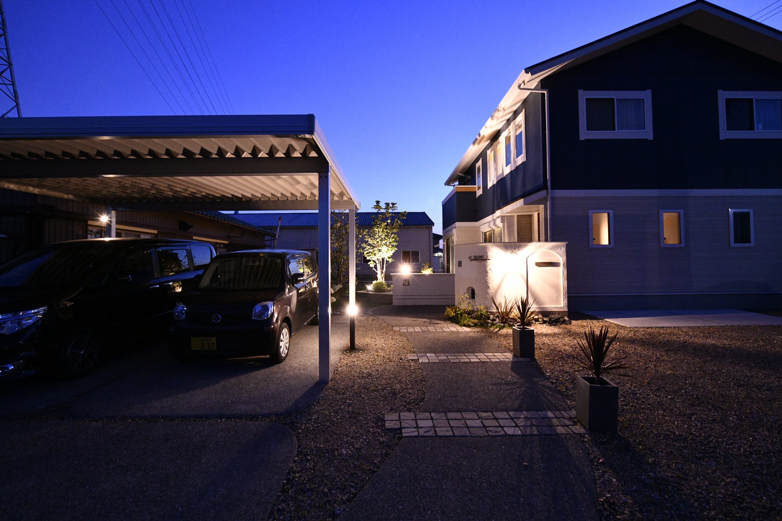 洋風テイストの外構でカーポートは折板カーポートを使用し