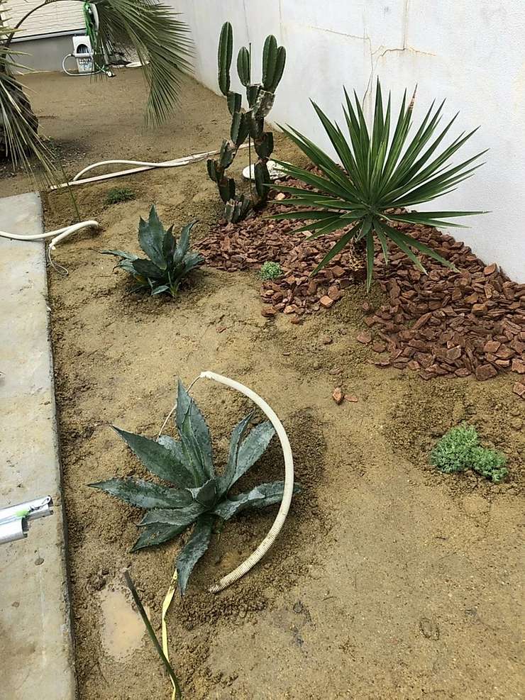 最終的には余計なものを一気に削っていき、チップなどを散らして、もっとおしゃれでリゾート感のある植栽エリアとなります。