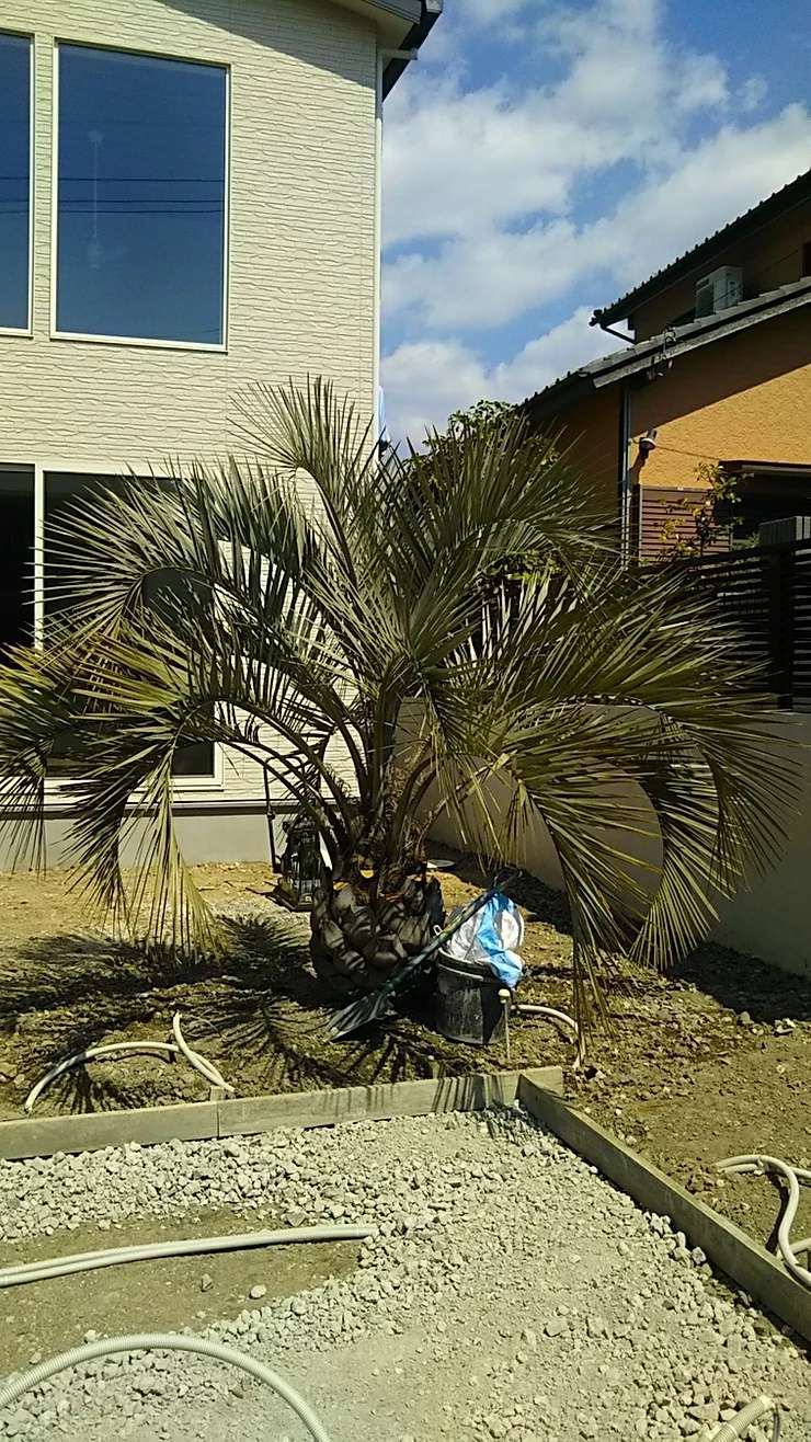 まだまだ始まったばかりですが、早速お庭にココスヤシを植えました。