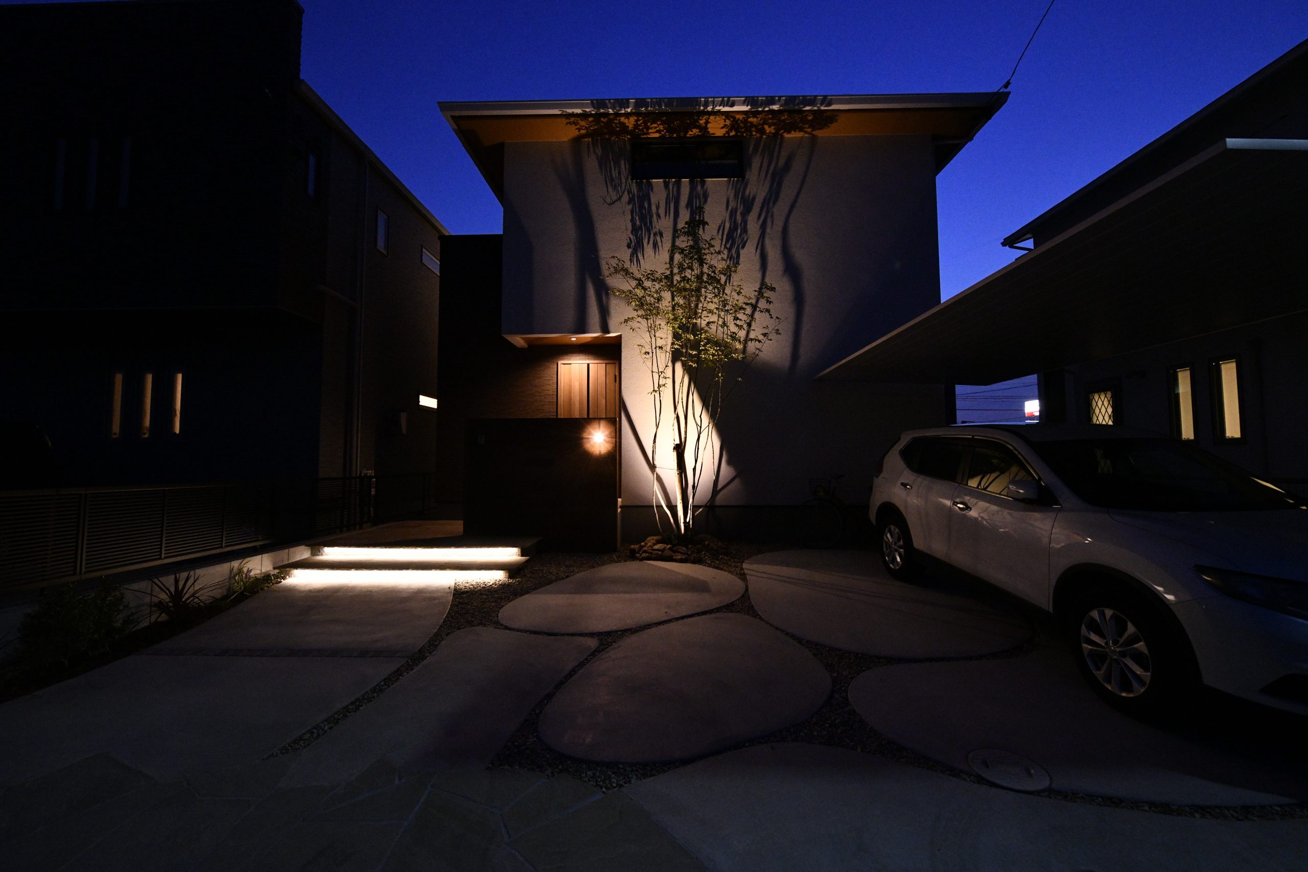 門柱のマリンライトに階段の間接照明が照明の内訳です