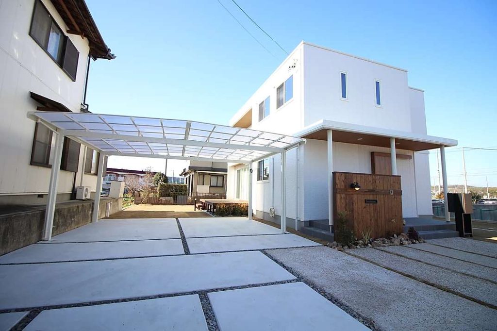 こちらの現場では、限られたスペースを有効活用しつつ、日々の使い勝手を重視しました。カーポートには、シンプルで住宅デザインを選ばないLIXILの「ネスカ」をセレクト 。透過率の高い屋根材を選ぶことで、玄関周りを暗くせず、明るく開放的なカースペースを実現しています 。