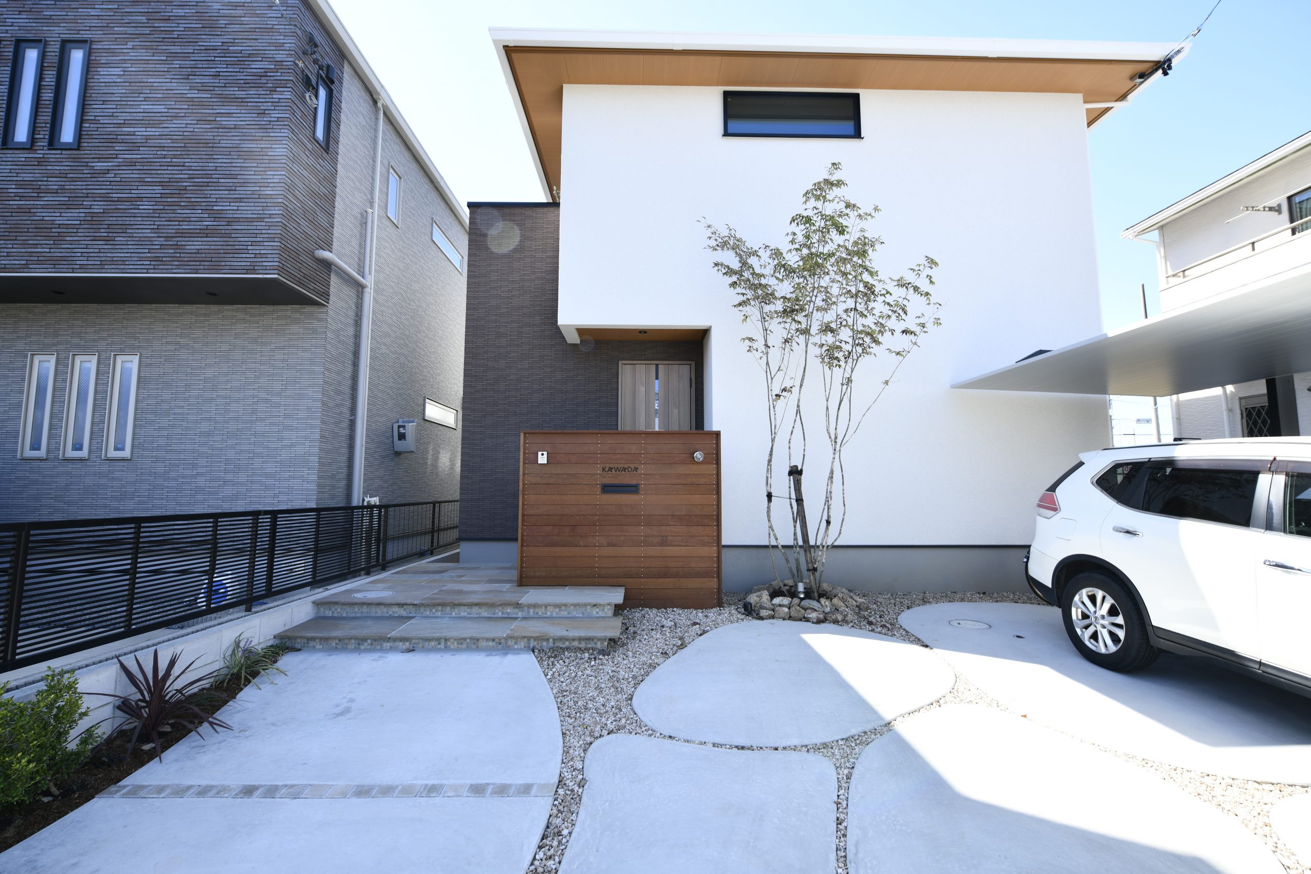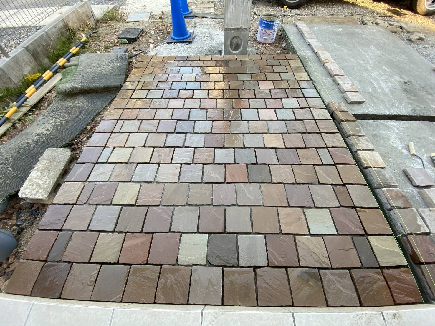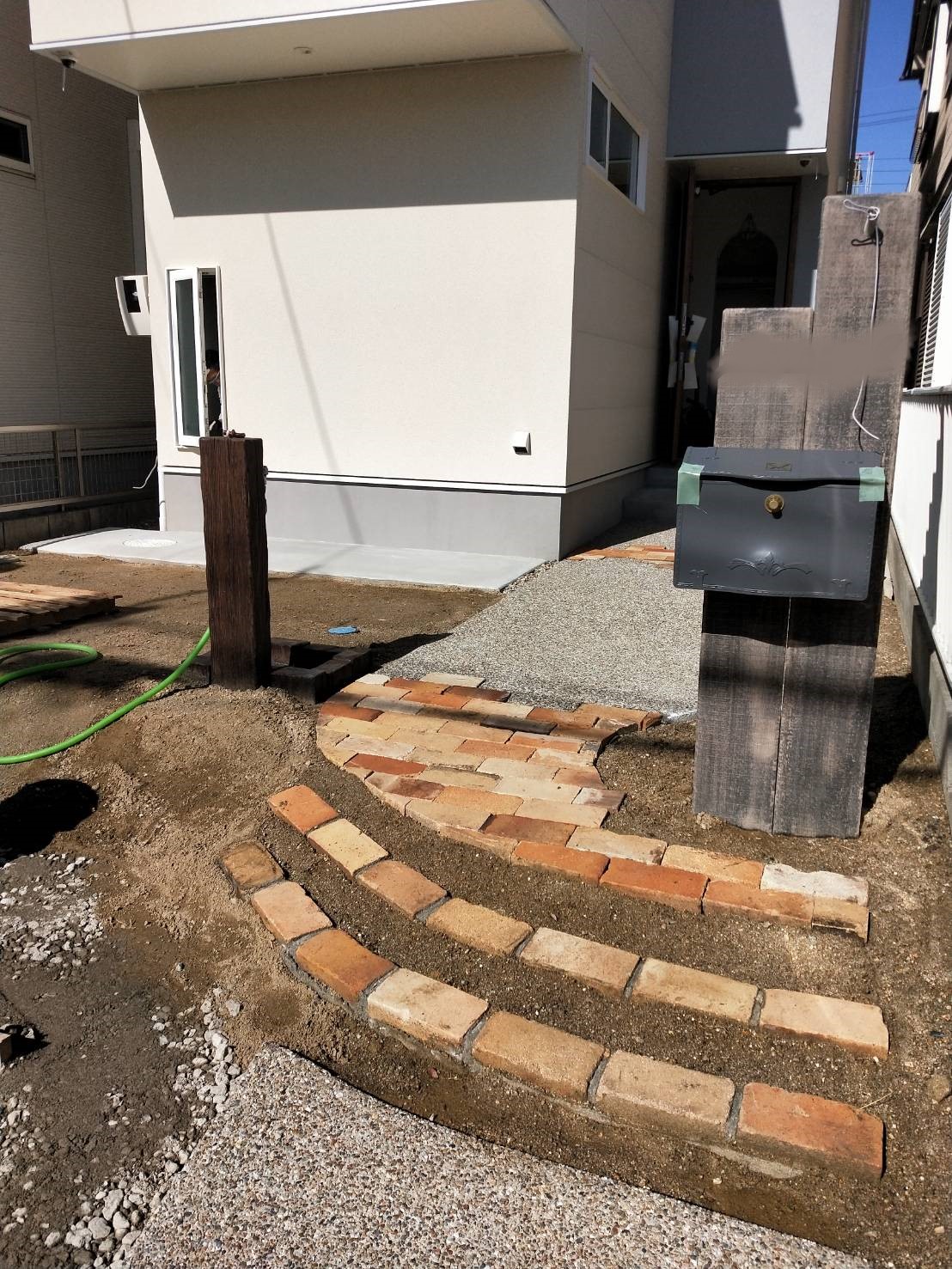 一宮市の新築外構現場の天然石アプローチ