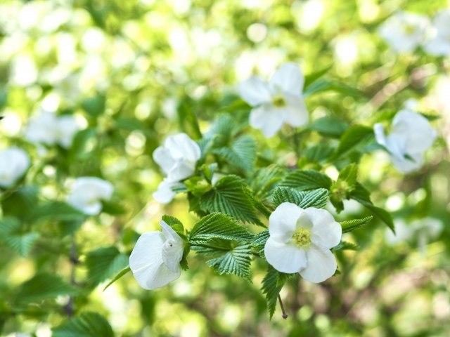シロヤマブキ(Rhodotypos scandens)
