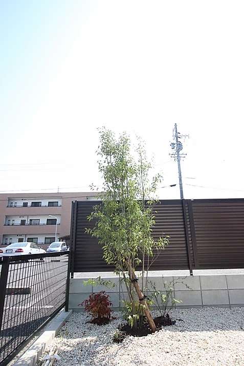シンボルツリーにはイロハモミジと庭にはハイノキを植え付けました。