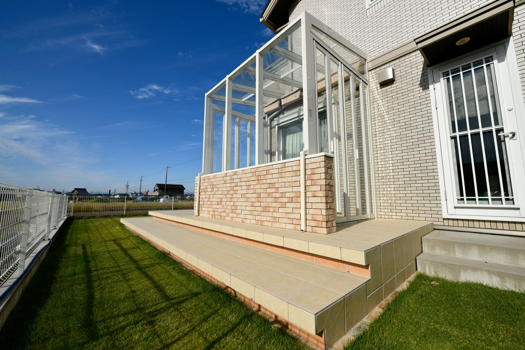 アップゲートとフェンス、門扉で囲われたクローズ外構デザインです。