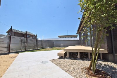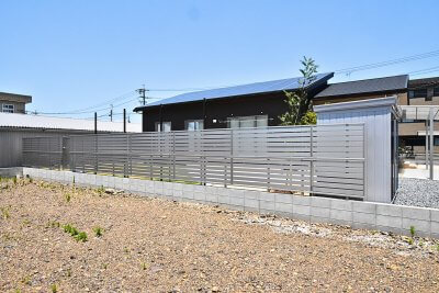正面には目隠しフェンスを配置し、プライバシーを確保しました。
