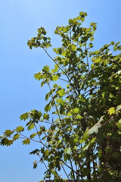 植栽にはシルバーティーツリー、ドドナエア、ミモザといった常緑樹をメインに、ハウチワカエデの落葉樹をバランスよく配置。