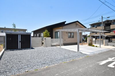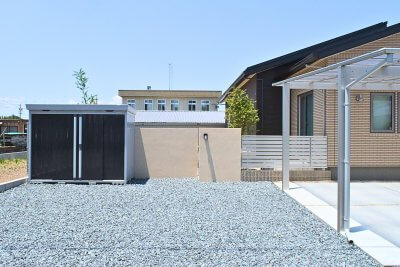 メインの駐車スペース以外は砂利敷きとし、コストパフォーマンスを高めています。