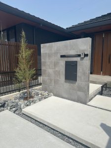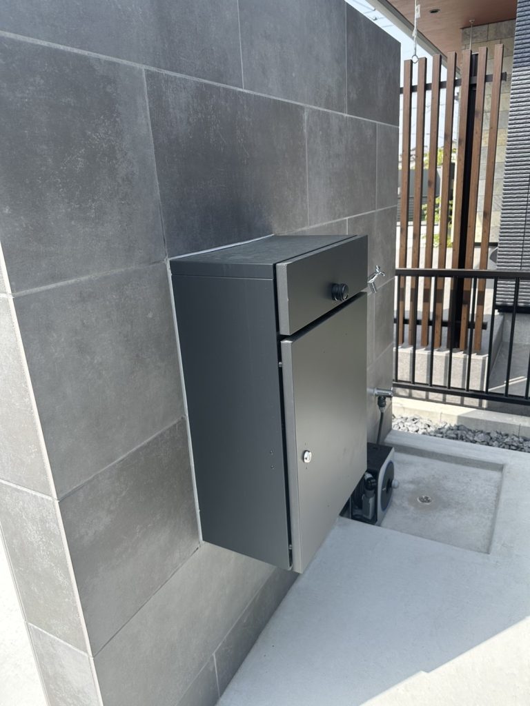 宅配ボックス・インターホン・表札をスマートに一体化し、機能性とデザイン性を両立させました。