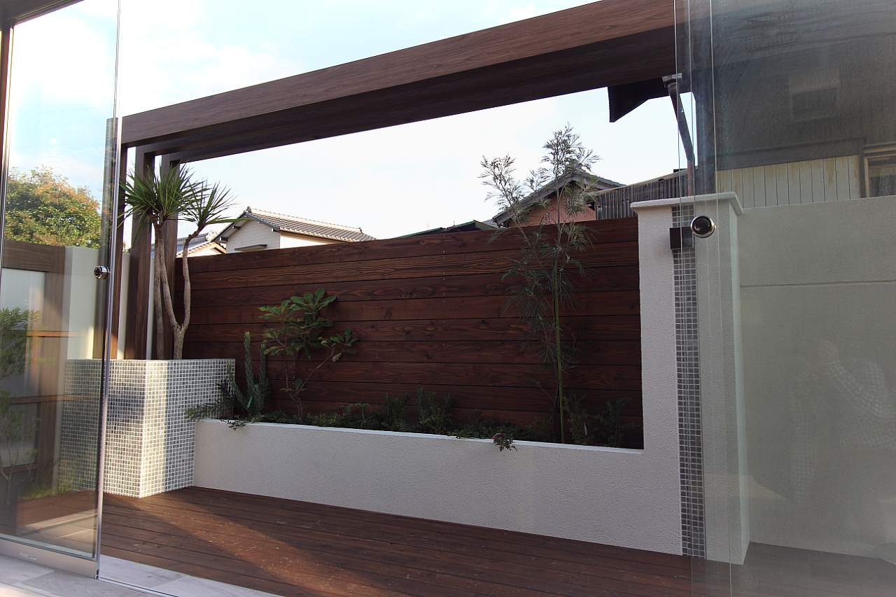 ガーデンといってもやや閉鎖的な環境で、プライベートが確保されている領域での工事となっており、外構工事とも呼べる範囲ですね。