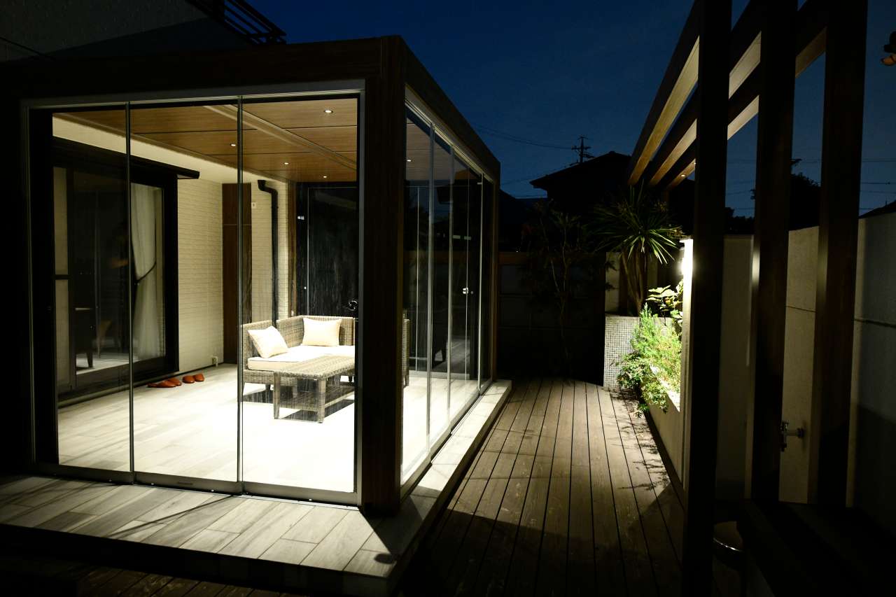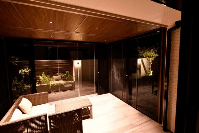 こちらのグラスポーチの中で落ち着いて植物を眺めることのできるエクステリアデザインとなっているため、静かな雰囲気を楽しみながら自慢のお庭を堪能できます。