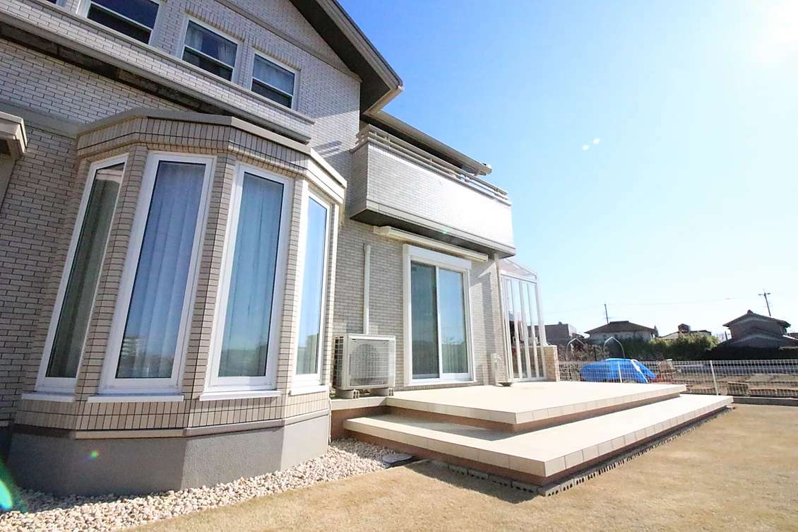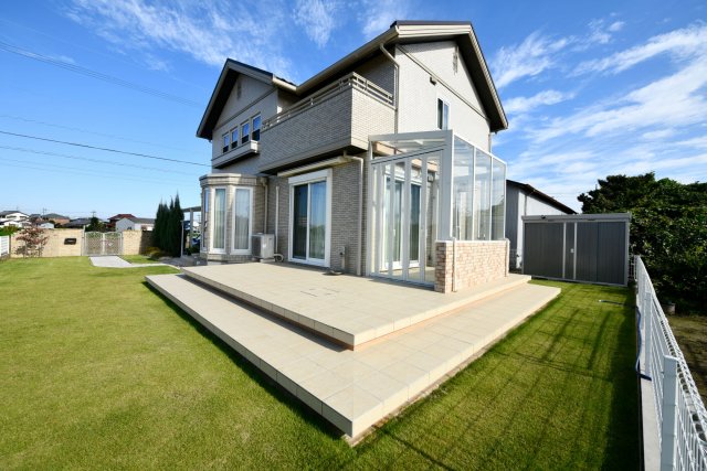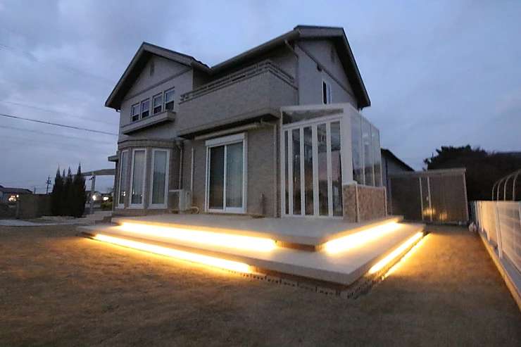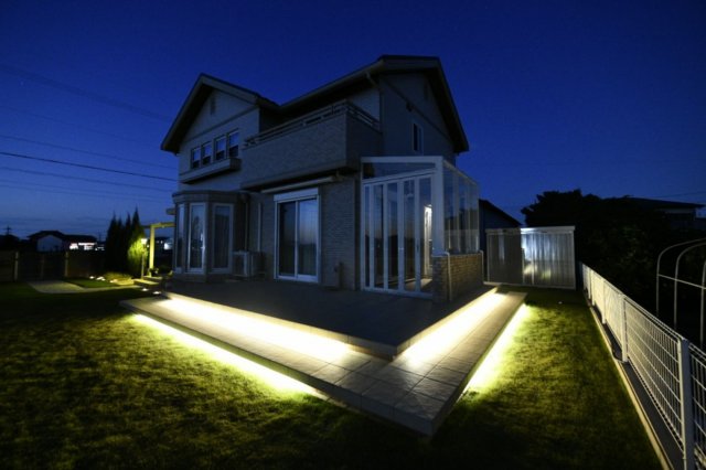 タイルテラスの隙間に備えられた間接照明を使用し、夜景がとても綺麗で印象的に演出されています。